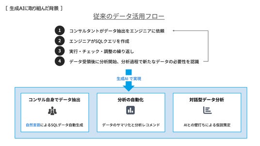 これにより、データエンジニアを介さずに、コンサルタントが直接データを抽出し、仮説検証から提案資料作成までを完結できる体制を実現、CDPは「データエンジニアのみが扱えるツール」から「営業・コンサル現場の武器」へと進化しました。