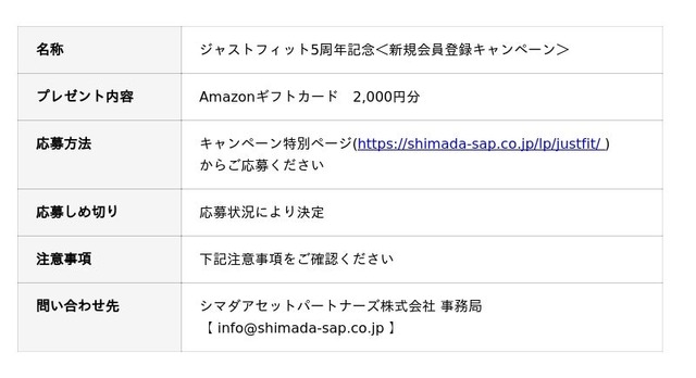 【キャンペーン対象および条件について】・本キャンペーンは、期間中に「ジャストフィット」へ初めて投資家登録(本人確認書類の提出および審査完了)を完了された方が対象です。