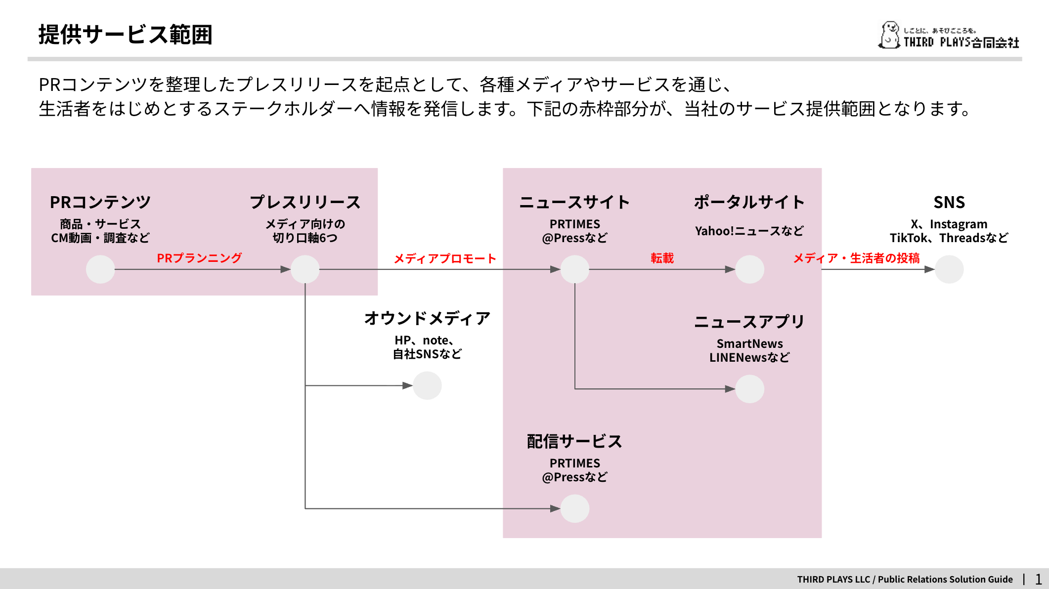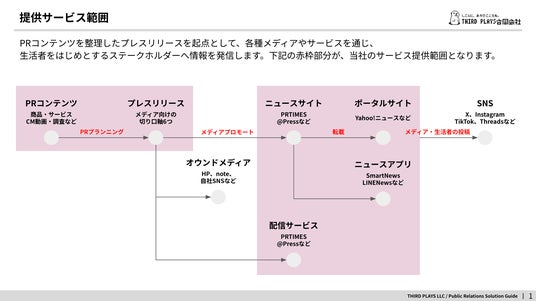 - PR事業(PRプランニング、プレスリリース作成、メディアプロモート)
