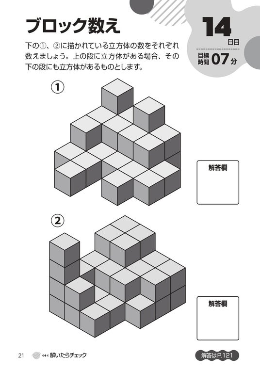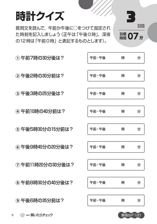 各問題には解く「目標時間」を設けることによって脳トレ効果を高められます。