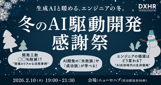 DXHR株式会社(本社:東京都渋谷区、代表取締役:前田 一成、以下 DXHR)は、2026年2月10日(月)、当社が運営するコワーキングスペース「NeuroHub(ニューロハブ)」にて、エンジニア向けイベント「冬のAI駆動開発 感謝祭」が開催されたことをお知らせいたします。