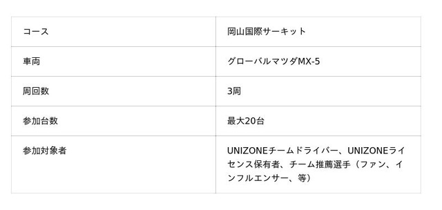 今回、UNIZONE 2026リーグ開幕戦ではエキシビションレースの開催を予定しております。このエキシビションレースには、各チームの参加選手だけでなく、UNIZONEライセンス保有者や、各チームが推薦するファンの代表者やインフルエンサー等も参戦する、最大で合計20台でのこれまでにない新しい交流戦となります。