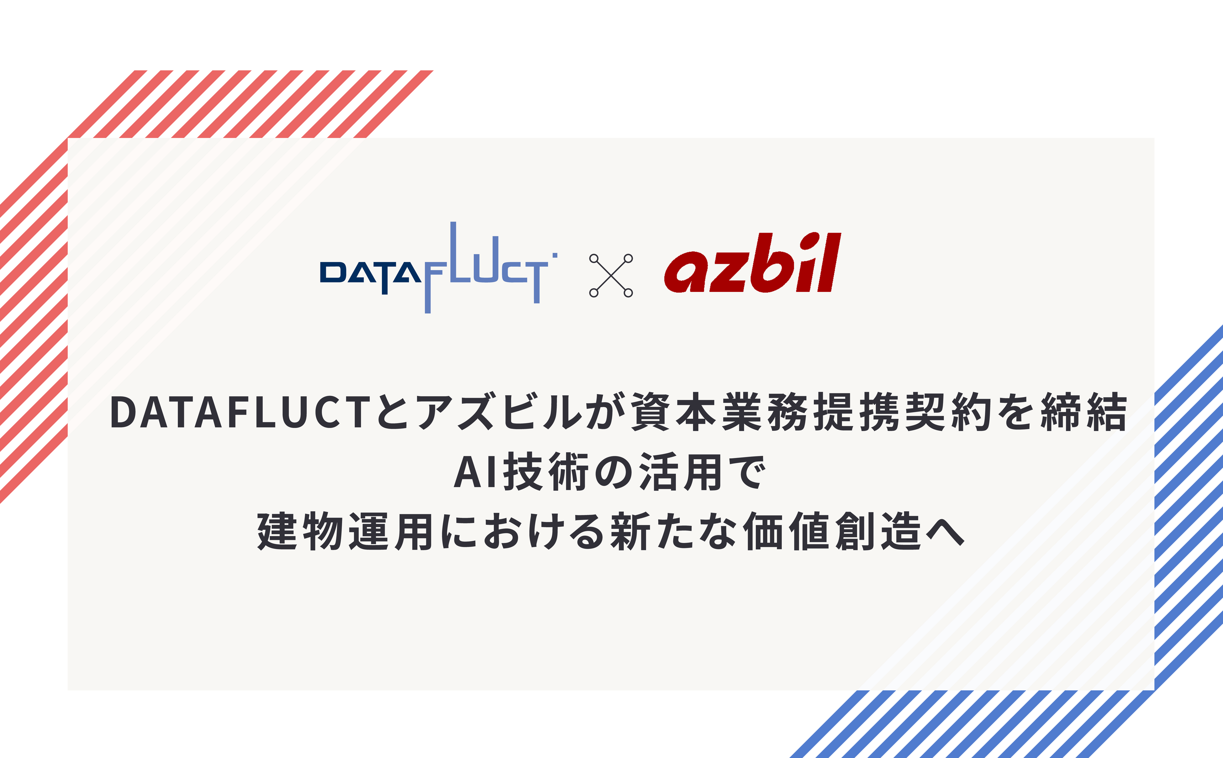 株式会社DATAFLUCT(本社所在地:東京都渋谷区、代表取締役CEO:久米村 隼人、以下DATAFLUCT)と、アズビル株式会社(本社:東京都千代田区 社長:山本清博)は、AI技術を活用した、より高付加価値な建物運用向けクラウドサービスの実現を目指し、2025年12月に資本業務提携契約を締結しました。これに基づき、アズビルからDATAFLUCTへの第三者割当増資による出資も完了しています。両社はこれまで建物運用データを用いたPoC(※1)を通じて協業を進めており、本提携を機に取組みを一層発展させ、AIによる新たな価値創造と事業モデルの強化を推進してまいります。