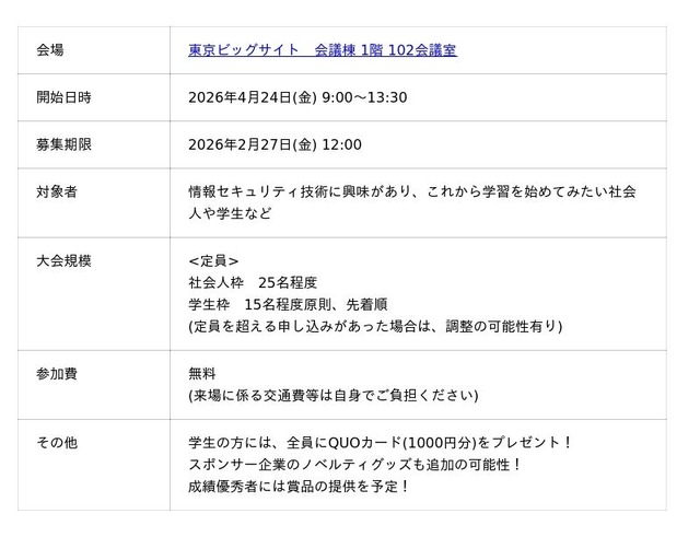 本イベントはJeopardy形式(個人戦)で行います。初心者から上級者まで幅広いスキルに対応した課題を準備しており幅広い皆様にご参加いただける内容となっておりますので、お気軽にご参加ください。