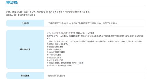 これは、各省庁が「住宅全体の省エネ性能向上を伴う改修を重視する」という方向性を明確にしているためです。