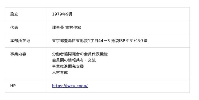 日本労働者協同組合連合会(ワーカーズコープ連合会) 組織概要