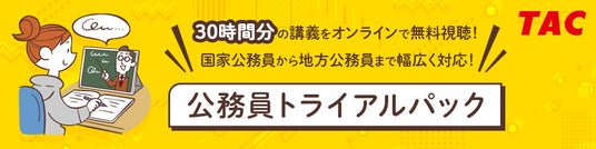 公務員トライアルパックとは、お申込み後にご覧になれるTACのWeb講義を申込前に、無料でお試し視聴いただけるパックです。色々な試験種の動画が幅広く体験可能なので、自分に合った試験種を選ぶ上でもぜひご活用ください!