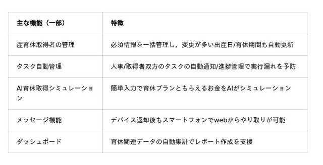 【事業内容】育休支援システムの開発・提供、コンサルティング