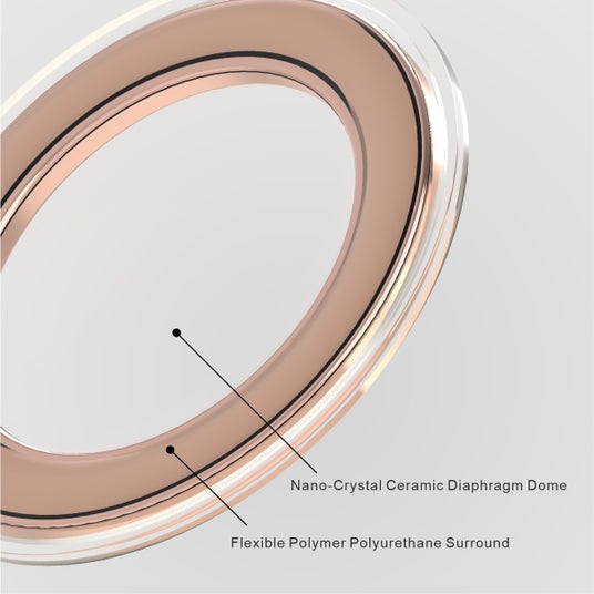柔軟性の高いポリマーポリウレタンサラウンドを備えたナノクリスタルセラミック振動板を採用。