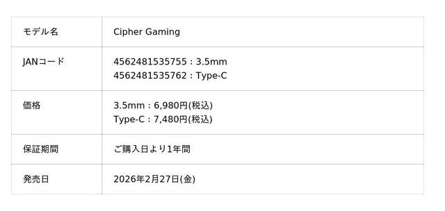 人気を博すエントリークラスイヤホン『Cipher』のゲーミングチューニングモデル、『Cipher Gaming』が登場です。