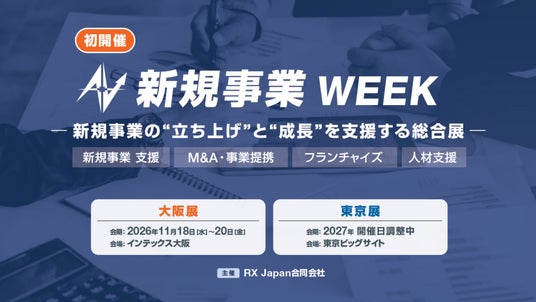 RX Japan合同会社(本社:東京都中央区、代表執行役員社長:田中岳志)は、“新規事業”に特化した総合展「新規事業 WEEK」を新規開催いたします。初回はインテックス大阪にて2026年11月18日(水)~20日(金)に開催、続いて2027年には東京ビッグサイトにて東京展の開催を予定しています。本展は、経営者・新規事業関連部署の課題解決に直結する4つの専門展で構成。既存事業の成長鈍化・不確実性の高まりという経営課題に対し、“第2・第3の柱”づくりを後押しします。