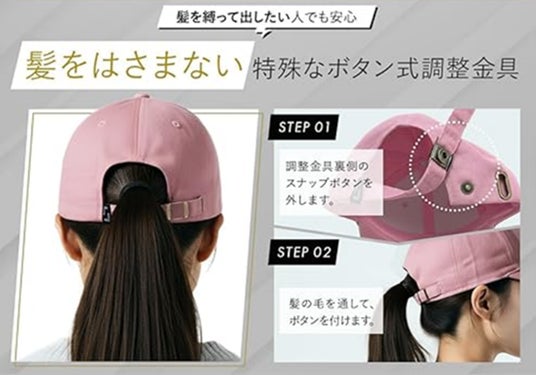 後部には、髪をはさみにくいボタン式の調整金具を採用。