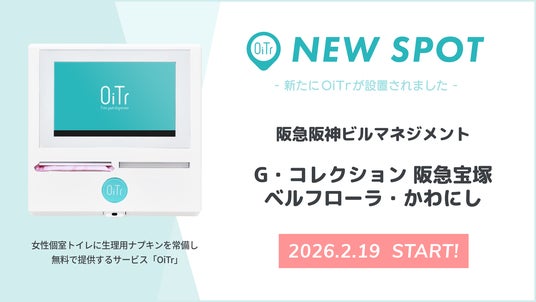 全国の商業施設や交通機関、公共施設、オフィス、学校などの女性個室トイレに、生理用ナプキンを常備・無料提供する日本初のサービス「OiTr(オイテル)」を展開するオイテル株式会社(本社:東京都新宿区、代表取締役:崎山 真)は、「トイレットペーパーのように、個室トイレに生理用品が行き届く社会」の実現を目指し、宝塚駅直結の「G・コレクション阪急宝塚」および川西能勢口駅直結の「ベルフローラ・かわにし」これら2つの商業施設にOiTrを設置し、2026年2月19日(木)よりサービスを開始いたしましたことをお知らせいたします。