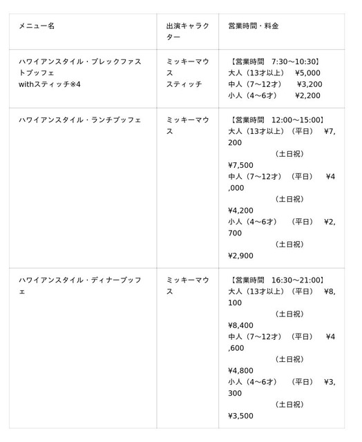 ※4 ハワイアンスタイル・ブレックファストブッフェwithスティッチのご利用は、ディズニーアンバサダーホテルにご宿泊の方に限ります。 (チェックイン日は除く)