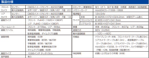 駐車監視機能も標準装備となっている為、車両駐車中も録画をすることが可能です。