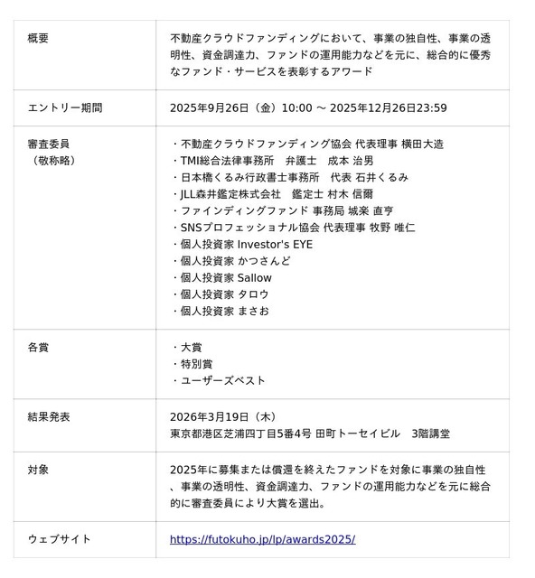 「不動産クラウドファンディング・オブ・ザ・イヤー2025」概要