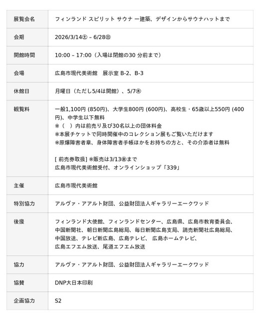 オープン・プログラム「フィンランドサウナのいまむかし」 2026/3/14㊏-6/28(日)