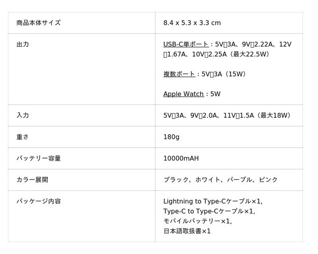 さらに、10000mAhの大容量バッテリーで、外出先や旅行でも安心して使用可能です。USB-CおよびLightningケーブル2本を編み込み式で同梱しており、ストラップとして持ち運べる便利なデザインも魅力です。