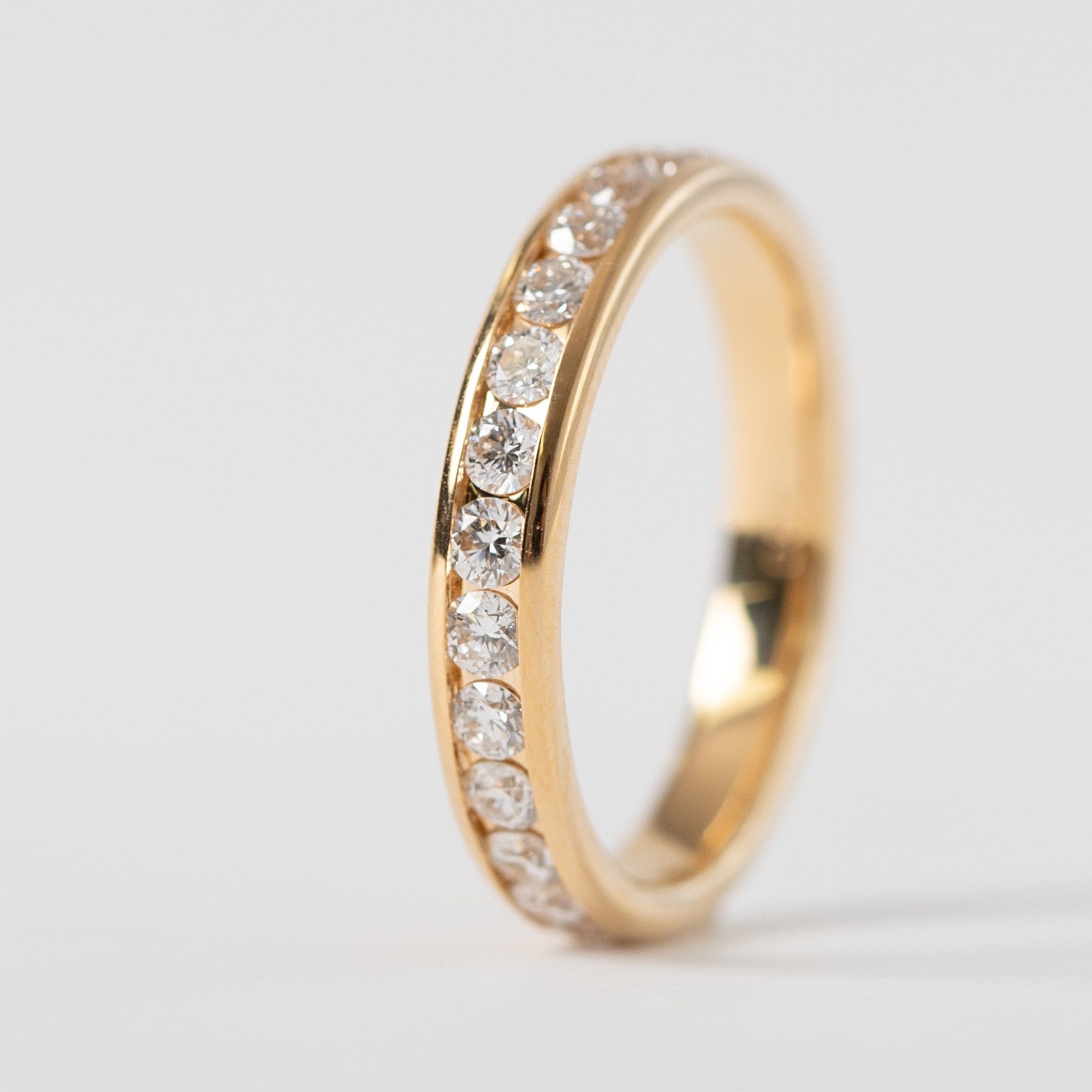 「エルダ フルエタニティ」リング(18K/Pt)地金でダイヤモンドを挟み込む「レール留め」により、全周にわたり途切れなく輝きが連なるエタニティリング。