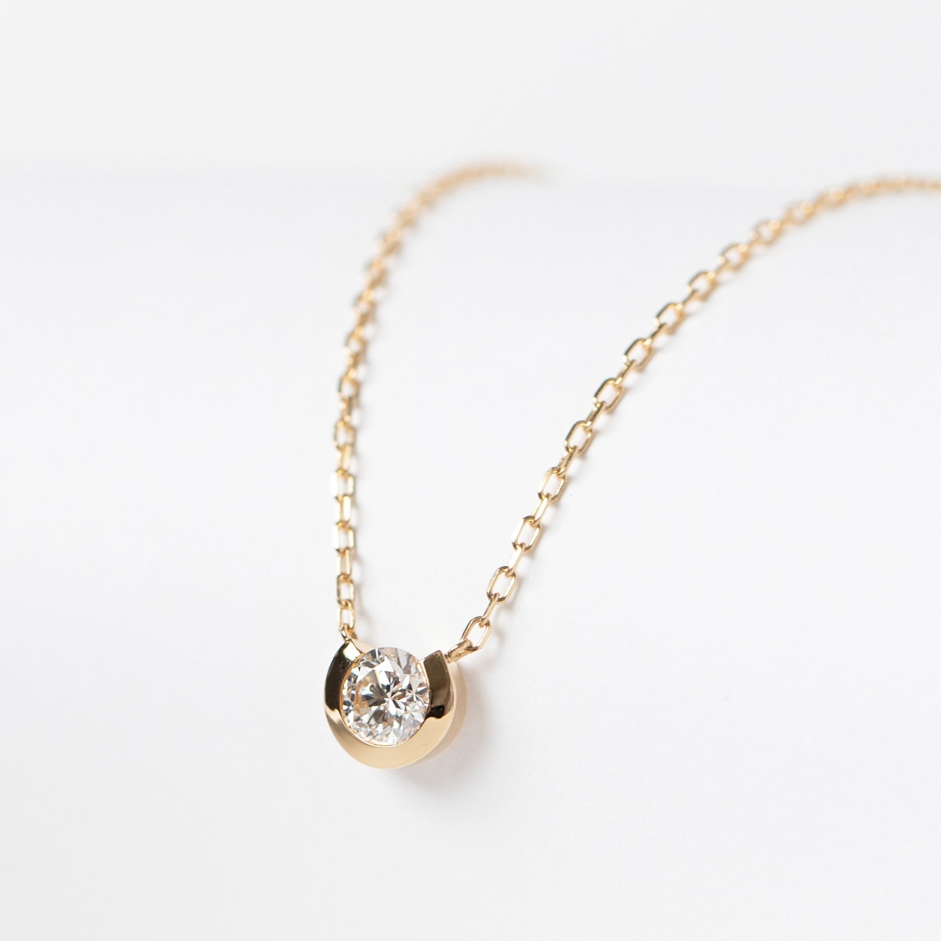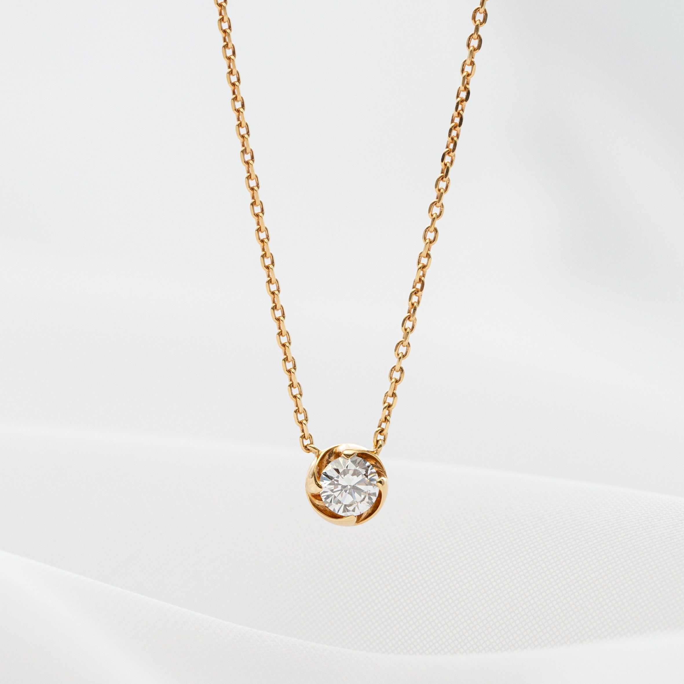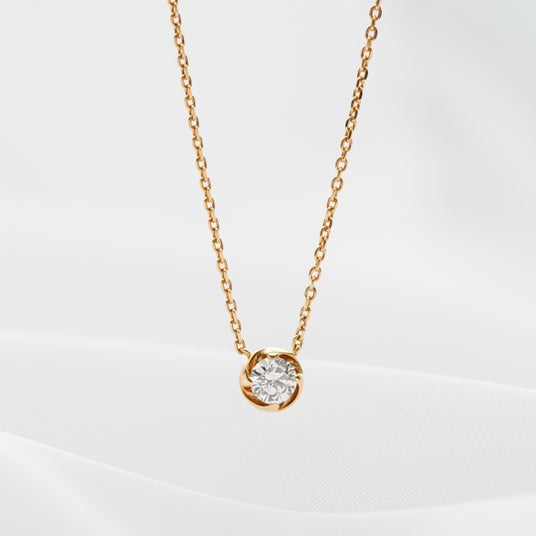 「0.3ct ラウラ」ネックレス(18K/Pt)つぼみがそっと花開く瞬間を思わせる、柔らかく優美なフォルムが印象的な一粒ダイヤネックレス。