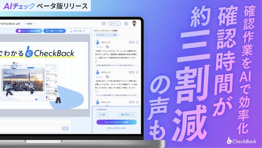 rayout株式会社(所在地:東京都渋谷区、代表取締役:吉田壮汰、以下rayout)は、スポットPMのためのチェックバックツール「CheckBack(チェックバック)」に、新機能「AIチェック機能」を2月24日より全ユーザーに提供いたします。本機能は、プロジェクトマネジメント(以下、PM)業務の中でも負担が大きい、修正や確認作業のうち、ノンコア業務をAIが自動的に補助することで、PMの業務効率を大幅に向上させることを目的としたものです。β版の利用者からは、従来比で確認にかかる時間が約3割減少したという声も寄せられています。「AIチェック機能」により、チェックバック作業の時間短縮や確認漏れの防止を実現し、PMがよりコア業務に集中できる環境づくりを支援します。
