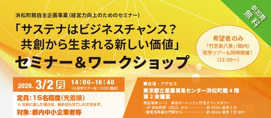 日程 令和8年3月2日(月) 14:00~16:40 (※見学ツアーは13:00開始)場所 東京都立産業貿易センター浜松町館 4階 第2会議室