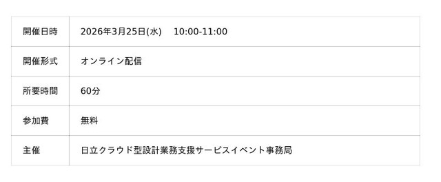本セミナーでは、コクヨ株式会社(芝山工場)様が進めてこられた設計業務改革の取り組みを中心に、同社が抱えていた課題と、その解決に向けた日立製作所、株式会社エクサ、および日立ソリューションズ西日本による協働アプローチを総合的に紹介します。