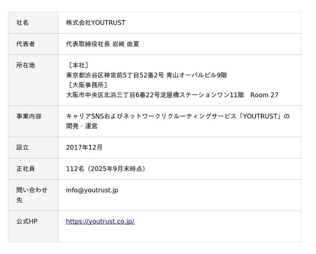 ▶ 採用支援「YOUTRUST TALENT」:https://lp.youtrust.jp/recruiter