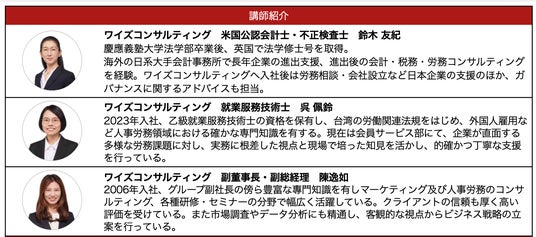 ワイズコンサルティング グループ(本社:中華民国台北市、代表取締役:吉本康志)は、台湾において企業経営や人事労務に携わる経営者・経営幹部・人事労務担当者を対象に、2026年の重要法改正や就業規則改定のポイントを解説するセミナー『最新、台湾労働関連法規と企業対応』を、2026年3月13日(金)にオンラインとオフライン(台北会場)のハイブリッド形式で開催いたします。本セミナーは、午前の部を日本語、午後の部を中国語にて1日2回開催いたします。
