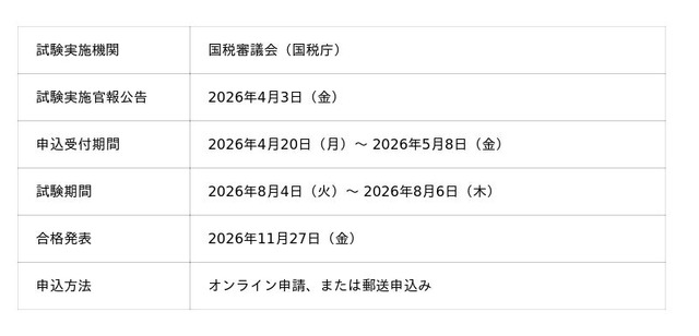 【令和8年度(第76回)税理士試験実施スケジュールについて(予定)】
