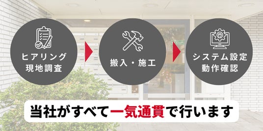 現地調査から施工・設定まで、導入に必要な工程をすべて当社が一括対応します。- ヒアリング・現地調査:既存宅配ボックスの構造および設置環境を確認します。