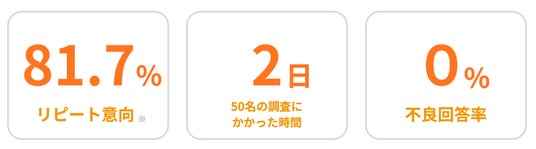 プロダクトフォースでは本サービスの一般公開に先駆け、ユニーリサーチユーザーを対象にAIインタビューの事前検証を実施しました。わずか2日間で50名の回答が集まり(最終的なn数は60名)、回収率は94%を記録。従来であれば数週間を要する規模のデプスインタビューを、短期間で完了できることを確認しています。また、体験面でも「今後、再度AIインタビューを受けたい」と回答したユーザーは81.7%に達し、無意味な回答やスキップといった不良回答率はゼロを記録しました。