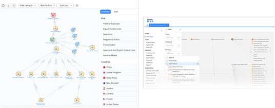 Sayariが提供するリスク検知ソリューション GRAPH(左)、MAP(右)