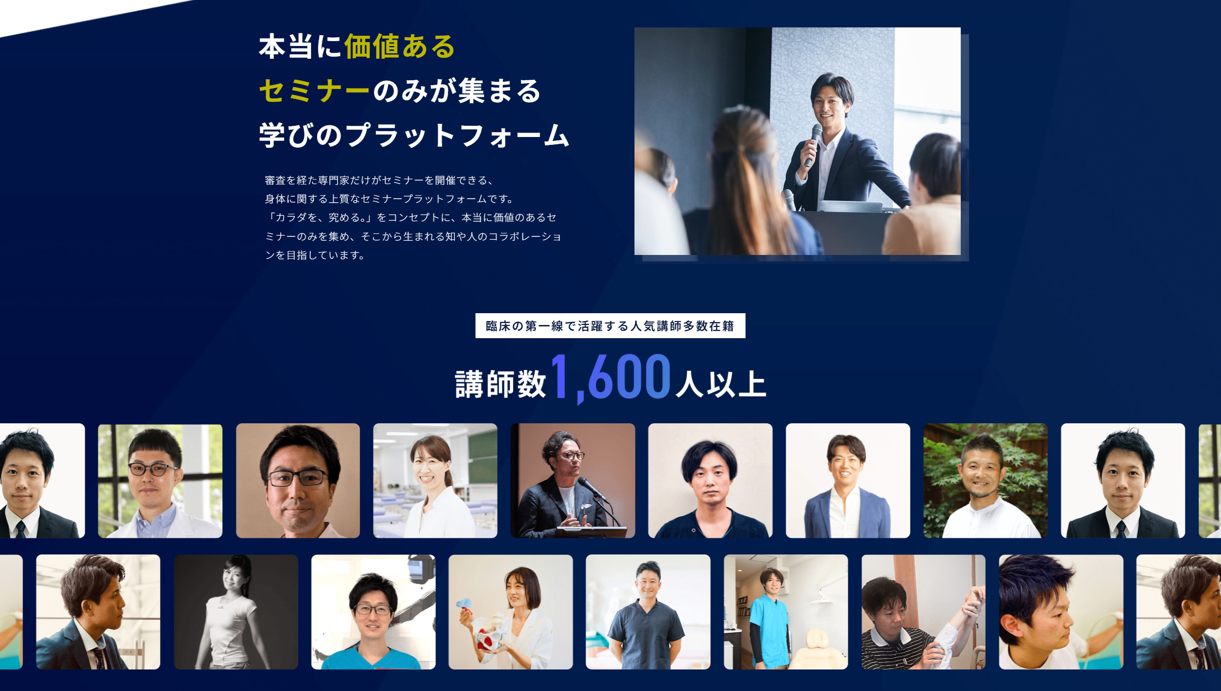 - 質の高いコンテンツ: 大学教員、病院勤務の理学療法士、スポーツトレーナーなど、各分野のトップランナーが講師を担当- 圧倒的なコンテンツ量: 5,000本以上の動画コンテンツ、400人以上の登録講師