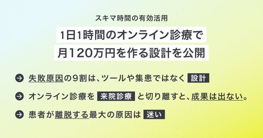 - 1日1時間のオンライン診療で9倍の収益増に繋げる「設計」とは