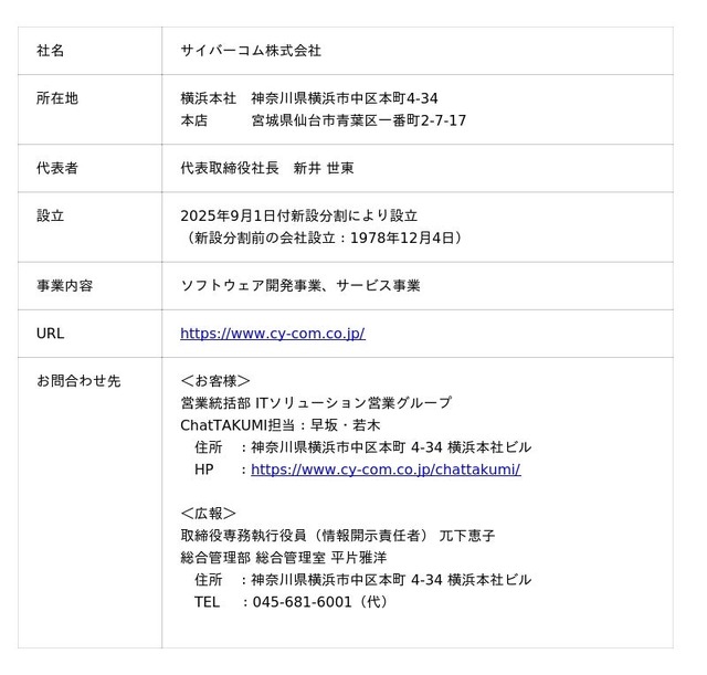 サイバーコム株式会社(代表取締役社長:新井世東)は、生成AIサービス「ChatTAKUMI」(チャットタクミ)に、新たに音声活用オプション機能を搭載し、2026年2月25日より提供開始することをお知らせします。