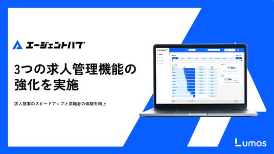 人材エージェント向け情報管理システム「エージェントハブ」を運営する株式会社Lumos(本社:東京都渋谷区、代表取締役:岩渕 響聖、以下「Lumos」)は、求人管理機能において3つの機能改善を実施しました。エージェントが使用する求人選択機能の強化・登録フォームのUI改善・対応ATSの拡充を行い、より効率的な求人管理と提案サポートを実現します。
