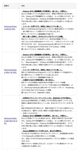 Samsung Galaxy S26 SC-51G/ Samsung Galaxy S26+ SC-52G/