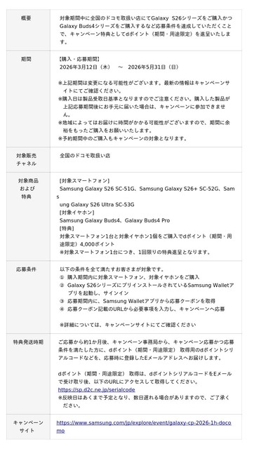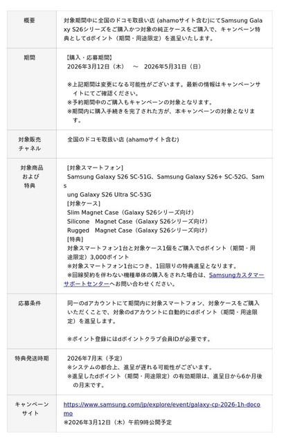 Samsung Galaxy S26 Ultra SC-53G発売記念 購入キャンペーン1.