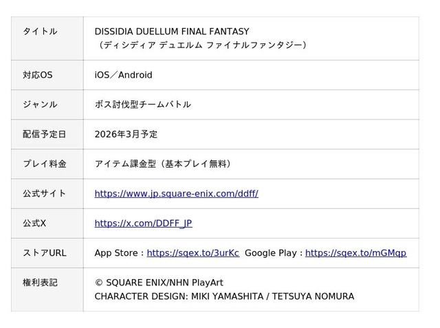 『ディシディア デュエルム ファイナルファンタジー』 アプリストアURL