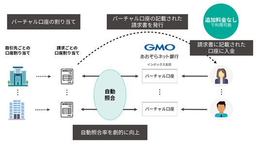 こうした背景から、「invox発行請求書」は入金消込の自動照合率向上と作業効率化を一層推進するため、GMOあおぞらネット銀行が提供するバーチャル口座を活用した入金消込機能の提供を開始しました。