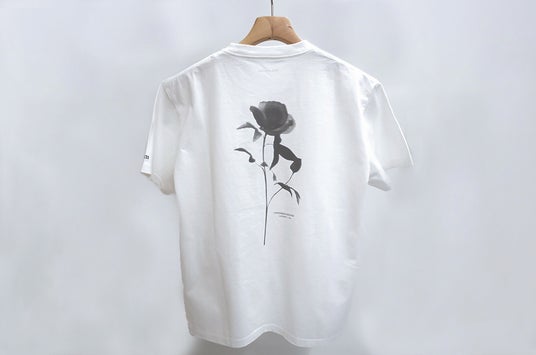 海島綿(シーアイランドコットン)の花をモチーフに、LIRの世界観を投影したコラボTシャツ。わずか一日で色を変える「一日花」の儚い美しさをグラフィックで可視化しました。希少な原料の背景にある環境問題へ問いを投げかける、素材・表現・思想が共鳴した一着です。