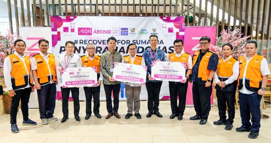 また、イオンインドネシア、イオンクレジットサービスインドネシア、イオンファンタジーインドネシア、イオンモールインドネシア、PT Sinar Jernih Sarana(イオンディライトインドネシア)が、店頭やキャッシュレス決済などによる緊急支援募金を実施し、合計3億730万インドネシアルピア(以下、IDR)を寄付しました。