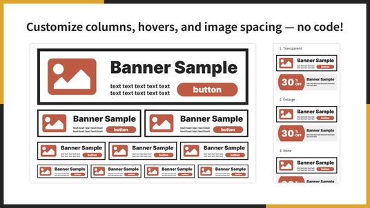 各バナー画像には、PC 用とスマホ用の画像をそれぞれ設定できます。また、カラム数や画像間の余白、上下の余白などをスライダー操作で簡単に調整でき、HTML や CSS の知識がなくても、テーマに自然に馴染むデザインを実現できます。