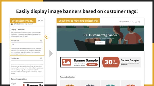「UR: Customer Tag Banner」は、顧客タグに応じて表示内容を切り替えられる画像バナーを、ストア内のあらゆるページに表示できるアプリです。