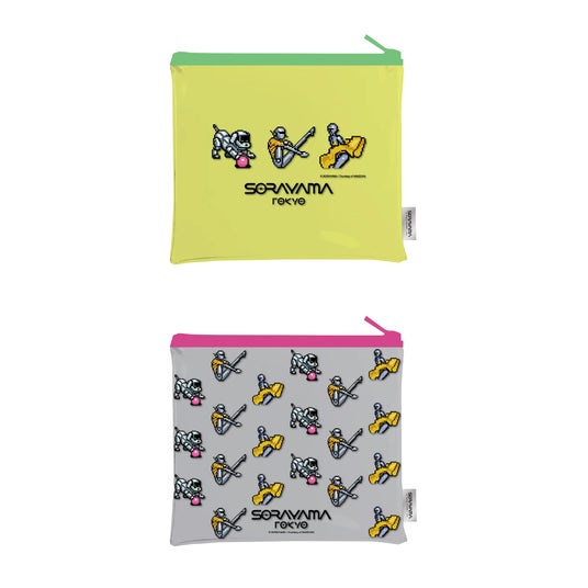空山基作品のモチーフをどこか懐かしいピクセル化した”ピクセルシリーズ”。ステッカー、アクリルキーホルダーのほかに、透け感があり中身のみえる便利なクリアポーチや、リップクリームやイヤホン等の小物が入るメッシュポーチが登場。
