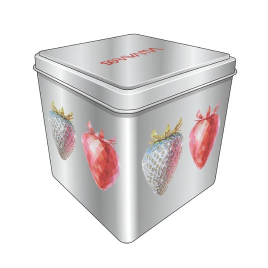 チョコレート ストロベリー缶“サクッ”とした食感のフリーズドライ苺の中にホワイトチョコレートを染み込ませたしっとりと甘い口どけのチョコレート。作品絵柄がマッチしたメタリック缶付き。