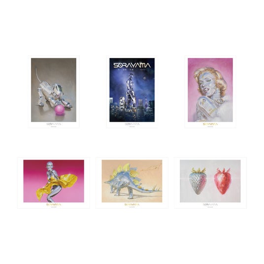 ポスター本展覧会キービジュアルを含む全6種のポスター(A3サイズ)。SORAYAMAロゴは箔押し仕様。丸めずに平らの状態でお持ち帰りいただけます。