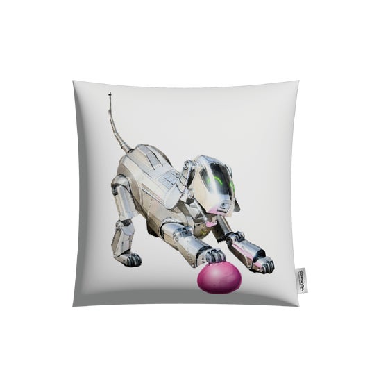 合皮素材のクッションカバー、両面それぞれ異なるアイボを大きくあしらったデザイン。