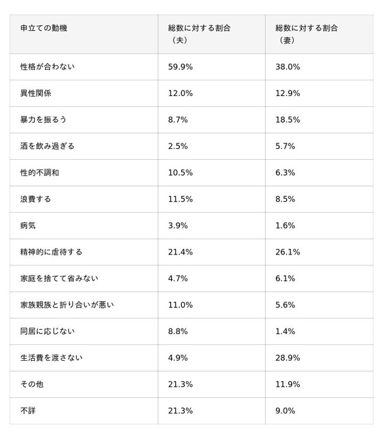 ただ、「性格の不一致」や「その他」の割合が意外と多いことがわかります。